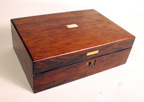 Probably English, the grain-painted lid opens to reveal a compartmentalized interior, the lids fitted with turned ivory knobs. Some losses, cracks, and wear. 3 1/4"h x 9 1/4"w x 6 1/2"d.