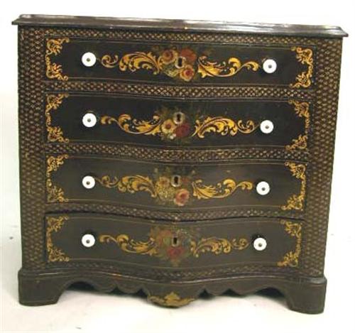 A VICTORIAN PAINT-DECORATED SERPENTINE DIMINUTIVE CHEST; American, (some wear) 23"h x 25"w x 13"d