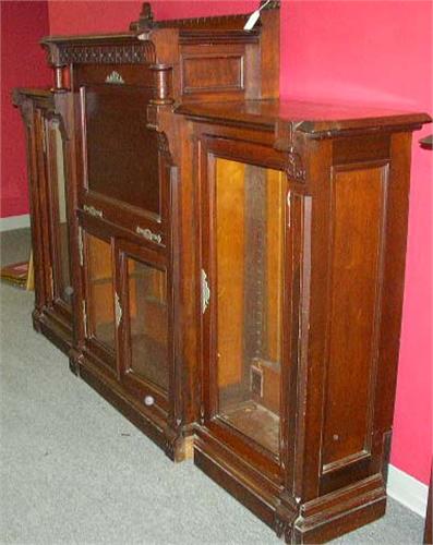 A VICTORIAN ROSEWOOD-INLAID FALL-FRONT DESK AND BOOKCASE; American, en suite with the previous lot, the desk opening to pigeonholes, 5' 2 1/2"h x 7'6"w x 19 1/2"d