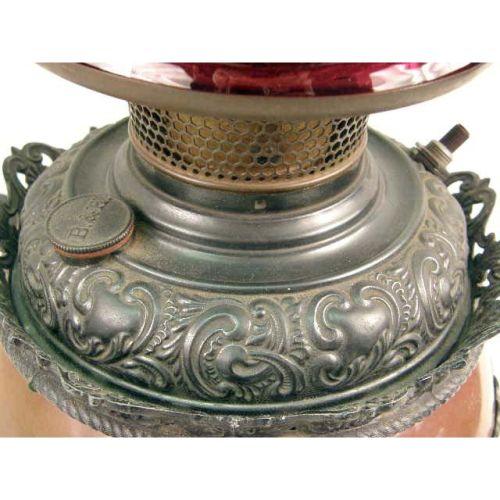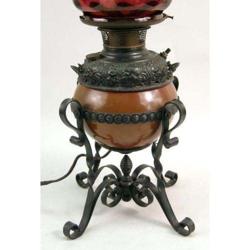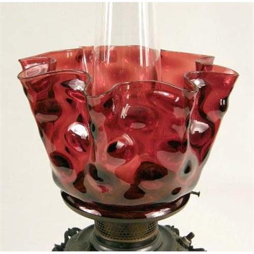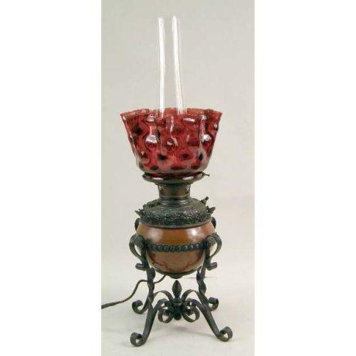 A VICTORIAN STYLE FLUID LAMP<BR><BR>With a ruby glass shade, electrified, 18"h