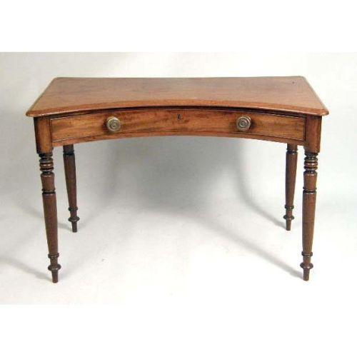 A VICTORIAN WALNUT CONCAVE-FRONT WRITING TABLE<BR><BR>English, 29-1/4"h x 44"w x 23"d