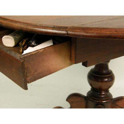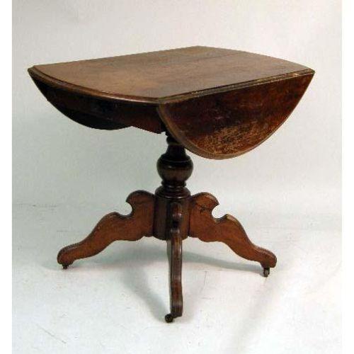 A VICTORIAN WALNUT DROP LEAF TABLE WITH DRAWER<BR><BR>American, some losses and wear, 30"h x 22"w (closed) x 38"l
