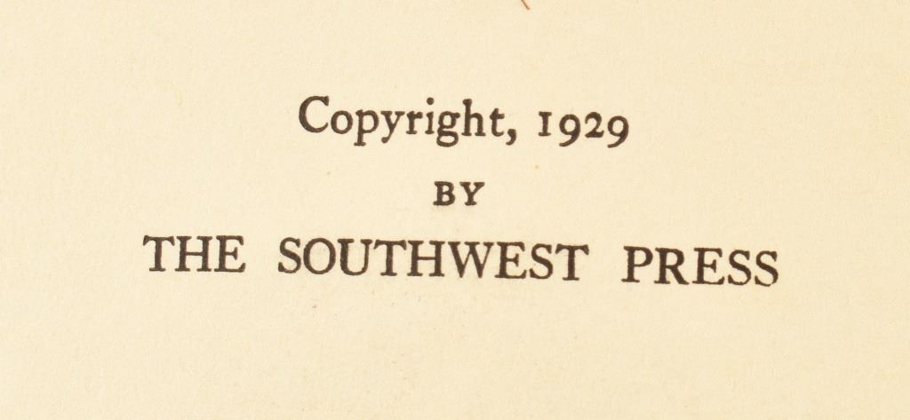 Signed 1929 First Edition. Published by The Southwest Press, Dallas Texas.