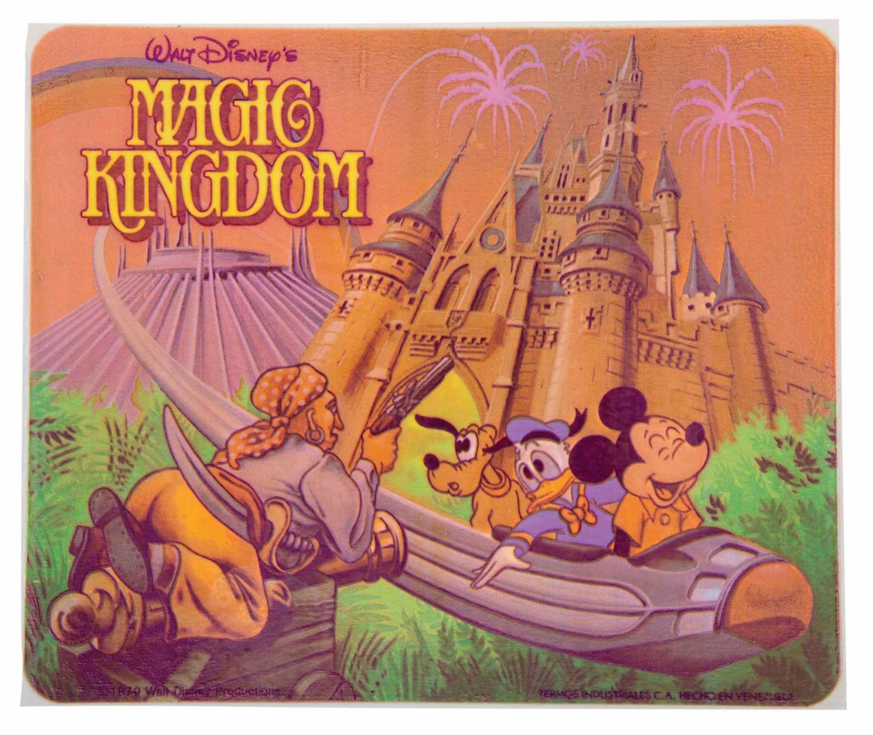 (Termos Industriales C.A., 1980s-90s) A sticker for a Venezuelan lunchbox or thermos, with artwork from a classic Walt Disney World lunchbox. Measuring 6" x 7.25", the unused sticker is in very good condition with color shift from age.