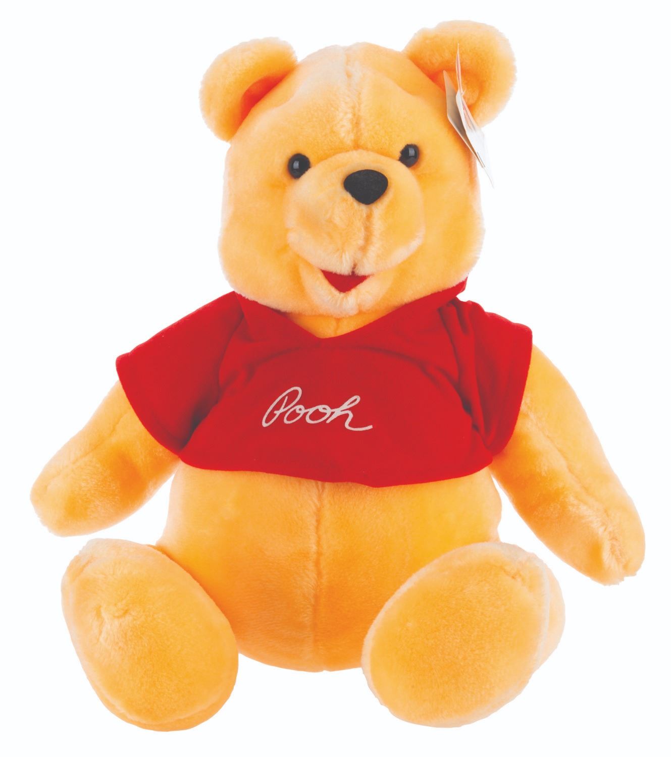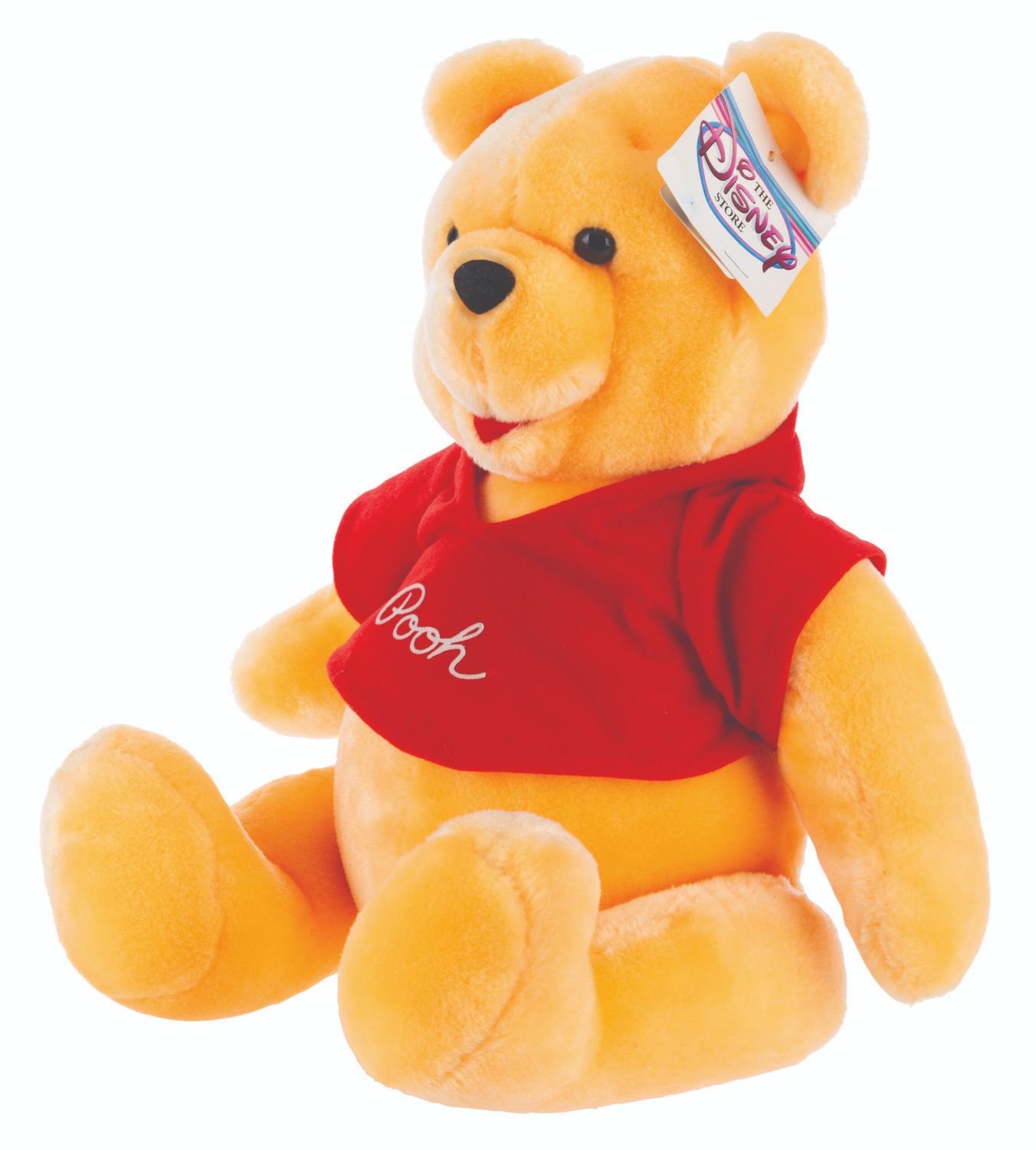 (Disney, 1980s) A Winnie the Pooh plush with the original Disney Store tag. This is likely one of the earliest pieces sold at the Disney Store, as the manufacturer's tag is labeled for both Disneyland and Walt Disney World. Sitting 15" tall, the plush is in fine condition.