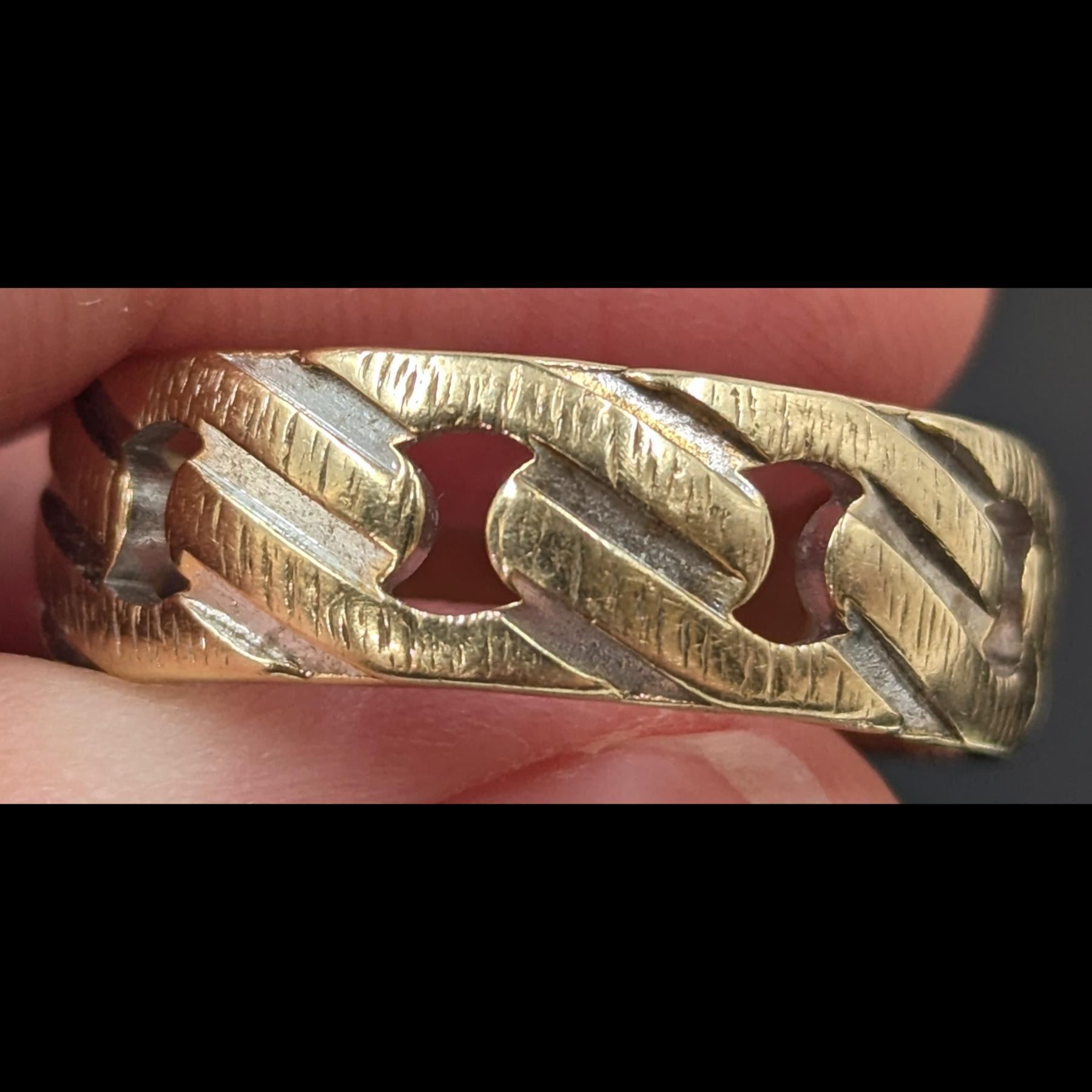 A Very Fine 14K Gold Men's Curb Link And Brush Finished Wedding Band, 7 Grams, Size 11 1/2
