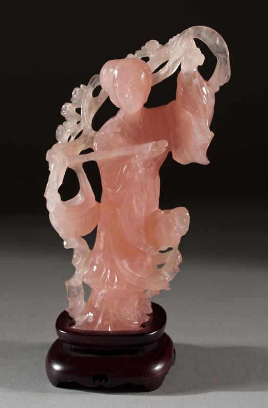 Finely carved to depict a lady holding a basket with a bird on her shoulder, with openwork flowers and flowing robe, with custom fitted rosewood stand. 6.5" H, not including stand. Circa early 20th century. Appraised in 1988 by Chicago Appraisers Association for $2500, appraisal on file.