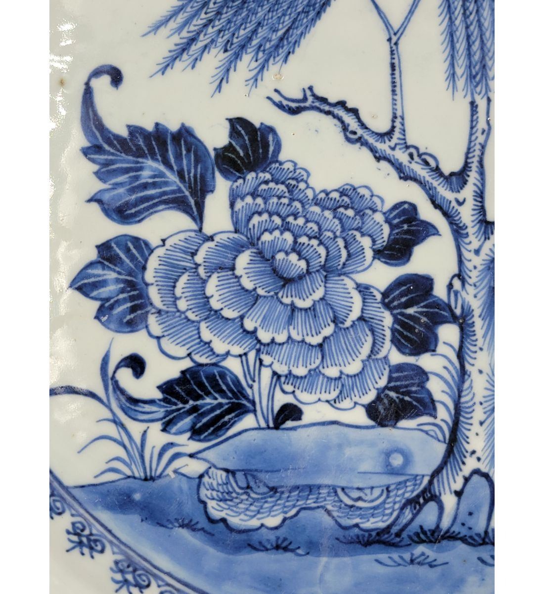 A Very Large 18th C Chinese Export Blue And White Platter. Measure 18.5" X 14 3/4". Provenance: One Person Private Estate Central Florida.