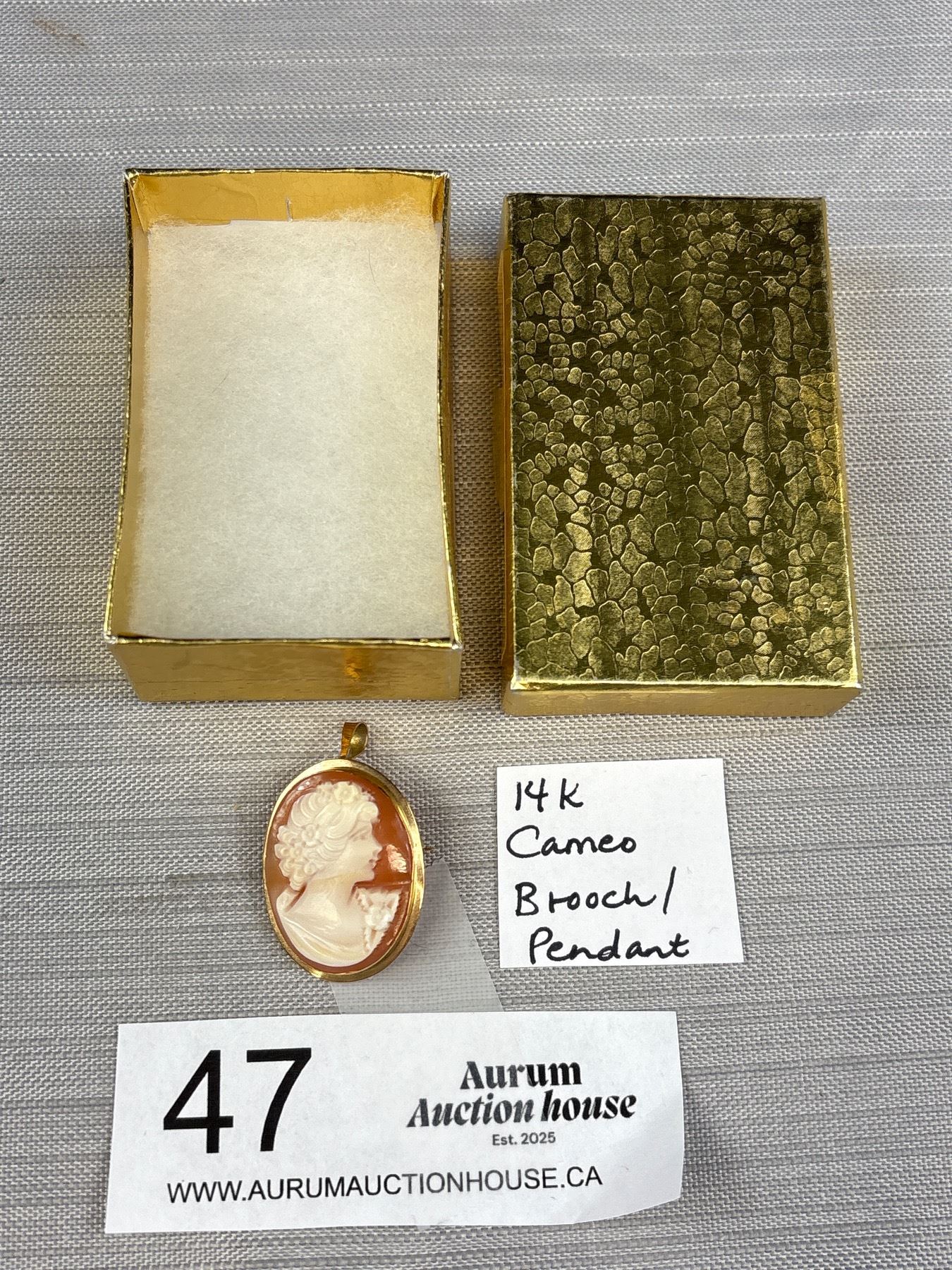 Very nice 14k Gold Cameo Brooch/Pendant Total weigh 3.39g