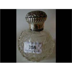 A Victorian Cut Glass Scent Bottle, of spherical form, with floral scroll embossed silver top, (marks rubbed), 12 cm £60-100