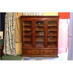 A Victorian Mahogany Triple Library Bookcase with Moulded Cornice and Glazed...