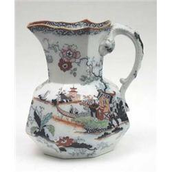 A Victorian Masons earthenware octagonal hydra jug printed with pagoda landscape, 11.5ins £200-250