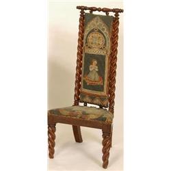 A Victorian Walnut Prie Dieu Chair, with tapestry woolwork back and seat, on tapered rope twist legs, See illustration £50-80
