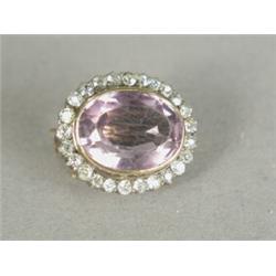 A Victorian amethyst and diamond cluster brooch, the bazel set amethyst surrounded by 25 eight-cu...
