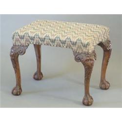 A Victorian carved mahogany dressing stool, with geometric upholstered seat and cabriole legs with satyr masks and claw and ball feet, 2ft. £200-300