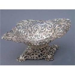 A Victorian cast oval basket, by the Goldsmiths & Silversmiths Co, with C and S scroll design, the pierced body decorated flowers, on spreading foot, London 1895, 22 oz £300-500