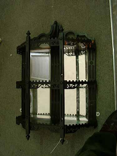 A Victorian ebonised wall bracket with mirrored back (a.f.), H 74cms W 51cms, and an oak and walnut cupboard, H 71.5cms W 70.5cms £60-90