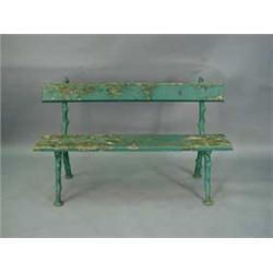 A Victorian garden seat with branch shaped supports, and a wooden seat. 59"long (150cm) Est.100/200