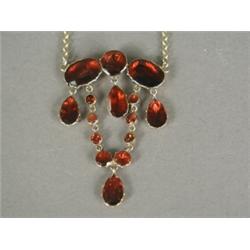 A Victorian garnet necklace, the round, oval and pear shape stones with closed back settings in g...