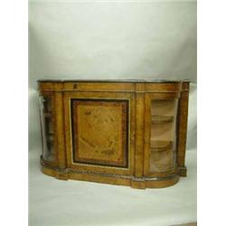 A Victorian inlaid figured walnut credenza with bowed ends (now fitted perspex) and central panelled door 5ft £700-900