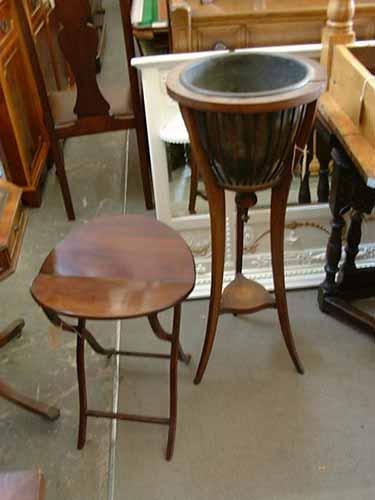 A Victorian mahogany coaching table, Dia 40.5cms; and an Edwardian mahogany jardiniere, (a.f.) H 91.5cms £60-90