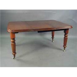 A Victorian mahogany extending dining table with one later extra leaf andstanding on turned reeded legs. 59 1/2" fully extended (151cm) Est.500/700