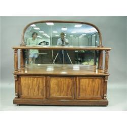A Victorian mahogany mirror back buffet, with two open tiers, the base enclosing three cupboar...