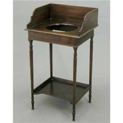 A Victorian mahogany wash stand, with shaped surround, on turned supports with undershelf 1ft 7ins £150-200