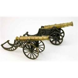 A Victorian miniature model of a cannon, on a cast iron carriage and a similar model 18ins £100-150