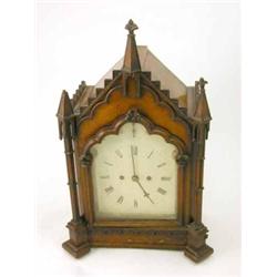 A Victorian oak Gothic mantel clock, with painted arched Roman dial with strike / silent and twin fusee movement, signed Dent, London 1395, 21ins £500-700