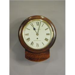 A Victorian oak drop dial wall clock with chain driven single fusee movement, replacement 20cm...
