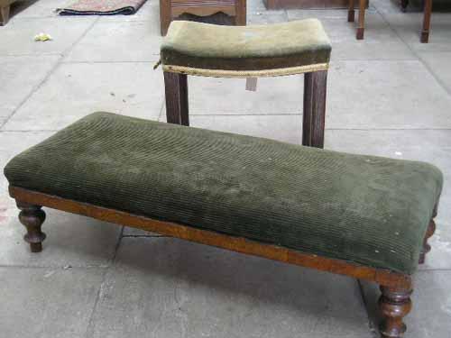 A Victorian oak fender stool, and a George VI coronation stool. £70-90