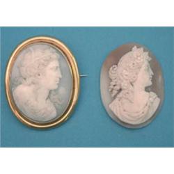 A Victorian oval shell cameo brooch carved with a classical profile, together with a similar unmounted shell cameo £100-150