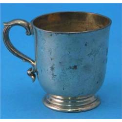 A Victorian plain silver christening mug, with scroll handle, maker Garrard & Co, London 1882, 3ins £40-60