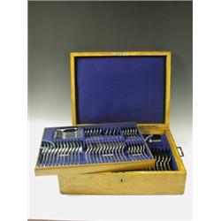A Victorian plated fiddle pattern table service for twelve in an oak canteen by James Dixon & Son, with plaque to the case 'St Albans Athletic Association Sports 1898' (82 pieces)