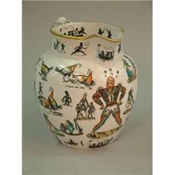 A Victorian pottery jug, printed with comical figures, 9ins...