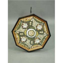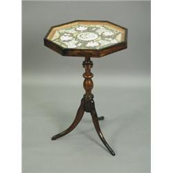 A Victorian rosewood tripod table, the octagonal top with a modern arrangement of shells, 48cm wide (1 leg repaired)