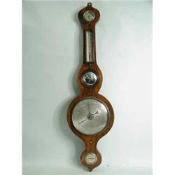 A Victorian rosewood wheel barometer with silvered dials. 36" high (92cm) Est.200/300