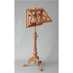 A Victorian satinwood duet music stand, the adjustable slopes with lyre splats, on a fluted turned column and foliate carved scrolling cabriole legs, 17ins. wide. £600-800