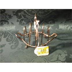 A Victorian silver 5-bar toast rack, with central loop handle, and on 4 paw feet, London 1883, 3 1/4" high, 2 1/2ozs.