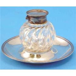 A Victorian silver mounted cut glass inkwell and stand, each with reeded rims, maker John Grinsell & Sons, London 1894 £120-150