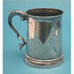 A Victorian silver pint mug with acanthus scroll handle and glass base, 1888 (gross 120oz) £80-120