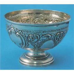 A Victorian silver rose bowl, decorated with an encircling band of 'C' scrolls and foliate swags with a central cartouche, Chester, 1898 4ins £80-120