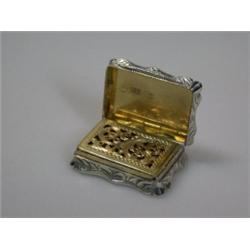 A Victorian silver vinaigrette by Edward Smith, Birmingham 1857, of serpentine rectangular shape, engraved with arabesques and engine turning, 3.75cm £120-150