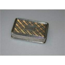 A Victorian silver vinaigrette by Nathaniel Mills, Birmingham 1838, of rectangular shape with moulded edge, engraved with tartan design, floral pierced grille, 40mm £150-200