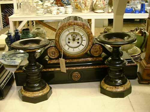 A Victorian slate and rouge marble clock garniture, having eight-day movement, H 32cms W 63cms £250-350