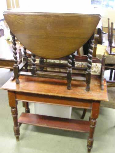 A Victorian stained pine washstand and an oak oval gateleg table, H 103cms W 104cms and W 88cms £40-60