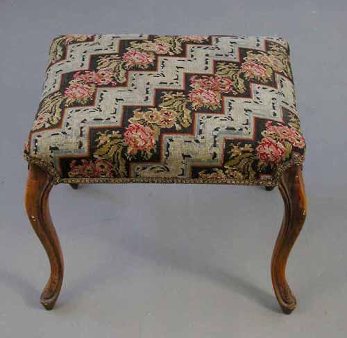 A Victorian walnut dressing stool, with tapestry seat on cabriole legs, 1ft.8ins...