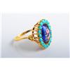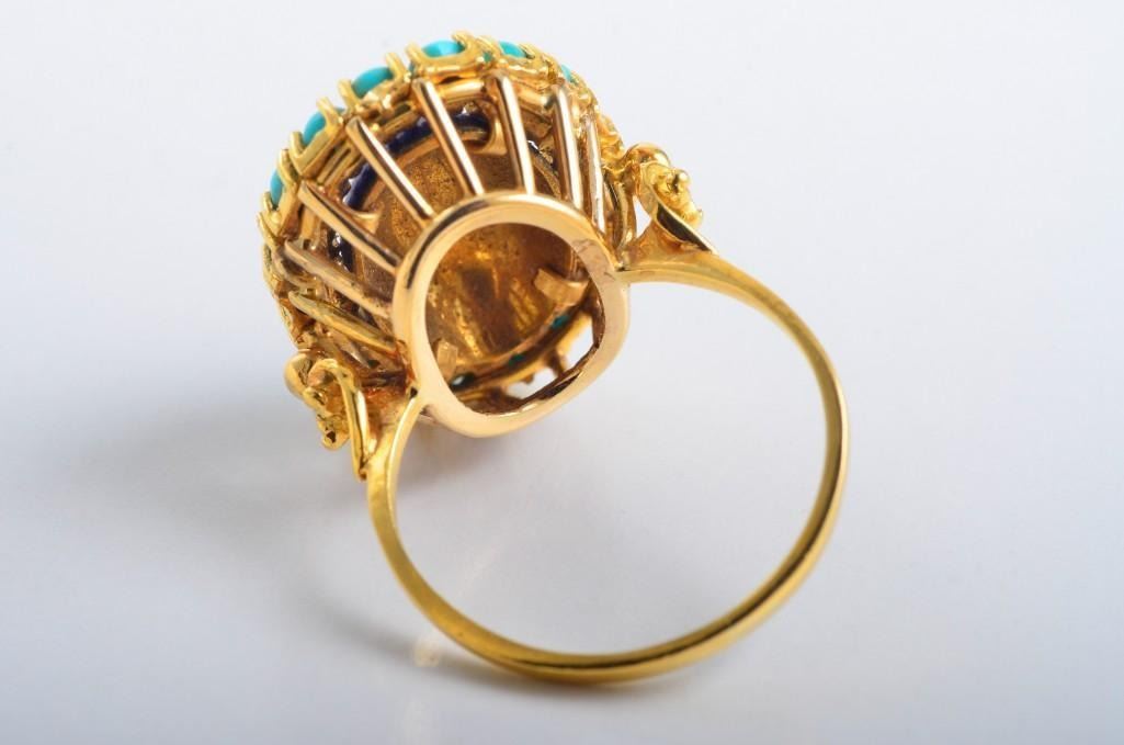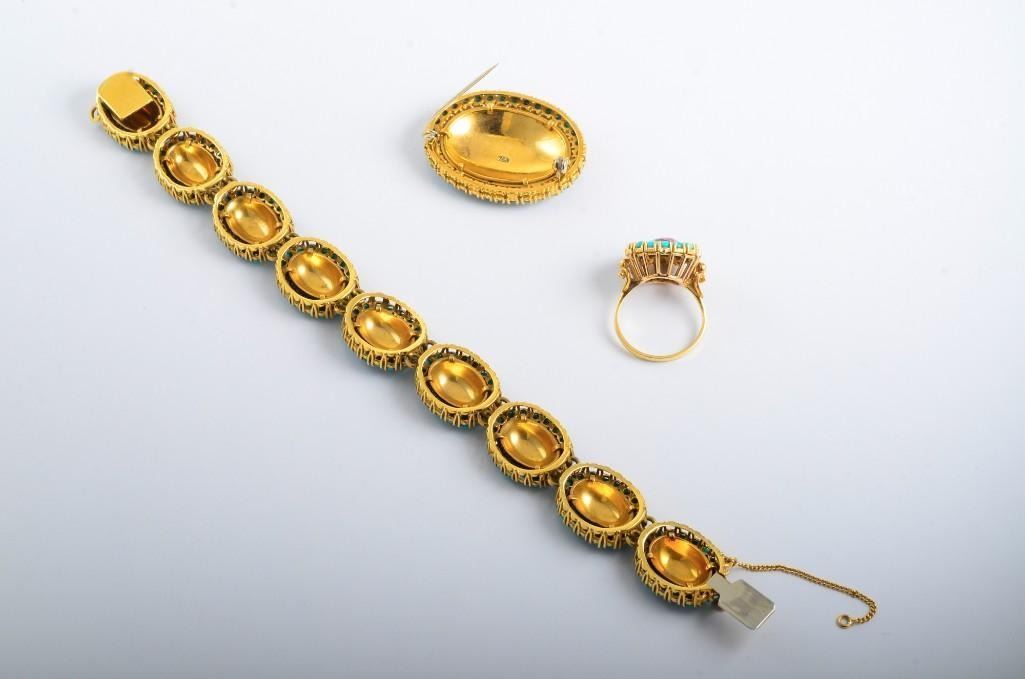 A Vintage Gold Brooch, Ring, and Bracelet Turquoise and Enamel Set