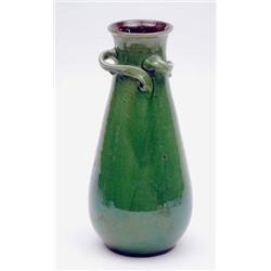 A W.L.Baron, Barnstaple vase made for Liberty & Co, green glazed with 3 twisted lug handles, impressed marks, 12ins £80-120